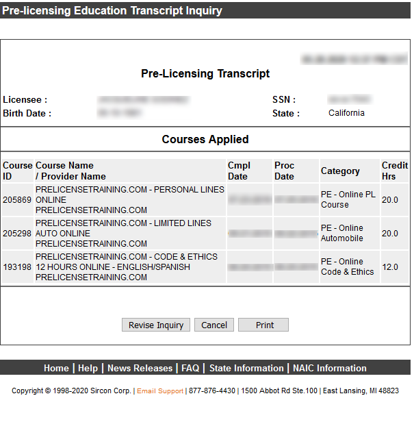 Checking My Pre-License information on Sircon